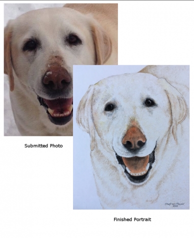 Size: Shown size is 11" X 14" for $75.00 16" X 20" for $125.00 20" X 24" for $175.00 24" X 36" for $225.00 Additional subjects in a picture are an extra 25% each and the smallest size for two subjects is 16"x20". How the process works: After placing your order I will contact you within 24 hours. You can then send your pictures and we can discuss the details. Timing: Potraits usually take 2 - 5 weeks, depending on size. In some cases they can be completed much sooner and rush jobs with just a week turn around are available for a fee in some cases. Ask at any time for an estimate of timing. I’ll send you a picture of the near final piece for your approval before I ship. At that time you are welcome to suggest any changes you'd like to see. The portrait displayed is colored pencil. |